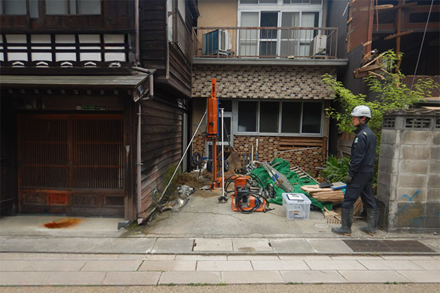 - 狭小地や既存建物周辺など、重機の搬入が困難な場所の調査