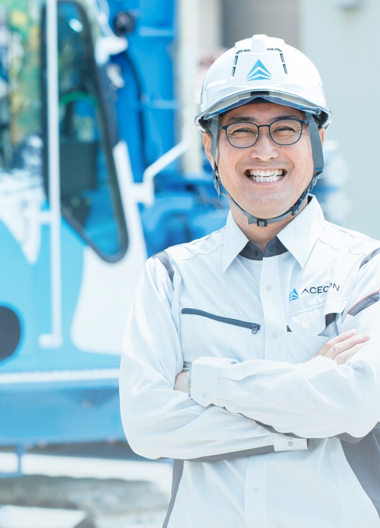 地震の被災地でもある能登での流動化処理土プラントの設置に、社長と共にスピード感を持って対応しました。「現場目線」を大切にし、立場に関係なく現場のサポートも行っています。フォローする際にも専門用語だけではなく、分かりやすく丁寧に伝えることを意識するとともに、分からないことに質問しやすい環境づくりを心がけています。さらに、経験を活かして新しい分野にも対応できるよう、常に挑戦の姿勢を持ち続けています。